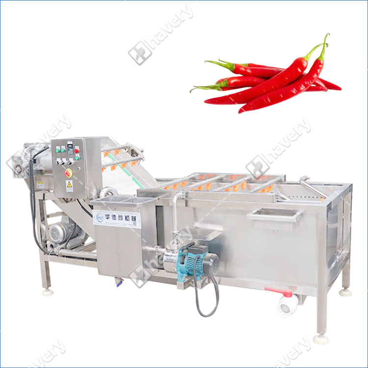 The machine adopts advanced air bubble generation technology that creates strong yet gentle water turbulence to effectively clean chili vegetables without causing mechanical damage.